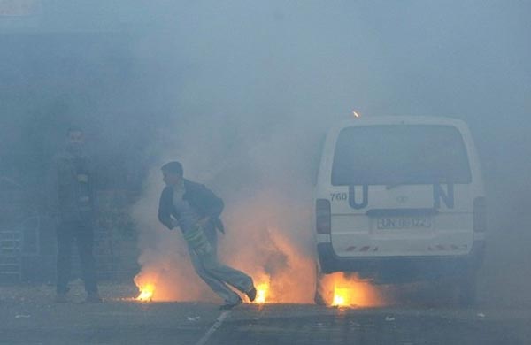 Israelischer Angriff mit Phosphorbomben auf die als Flüchtlingslager genutzte Schule "Beit Lahiya" in Nord-Gaza am 17. Januar 2009.